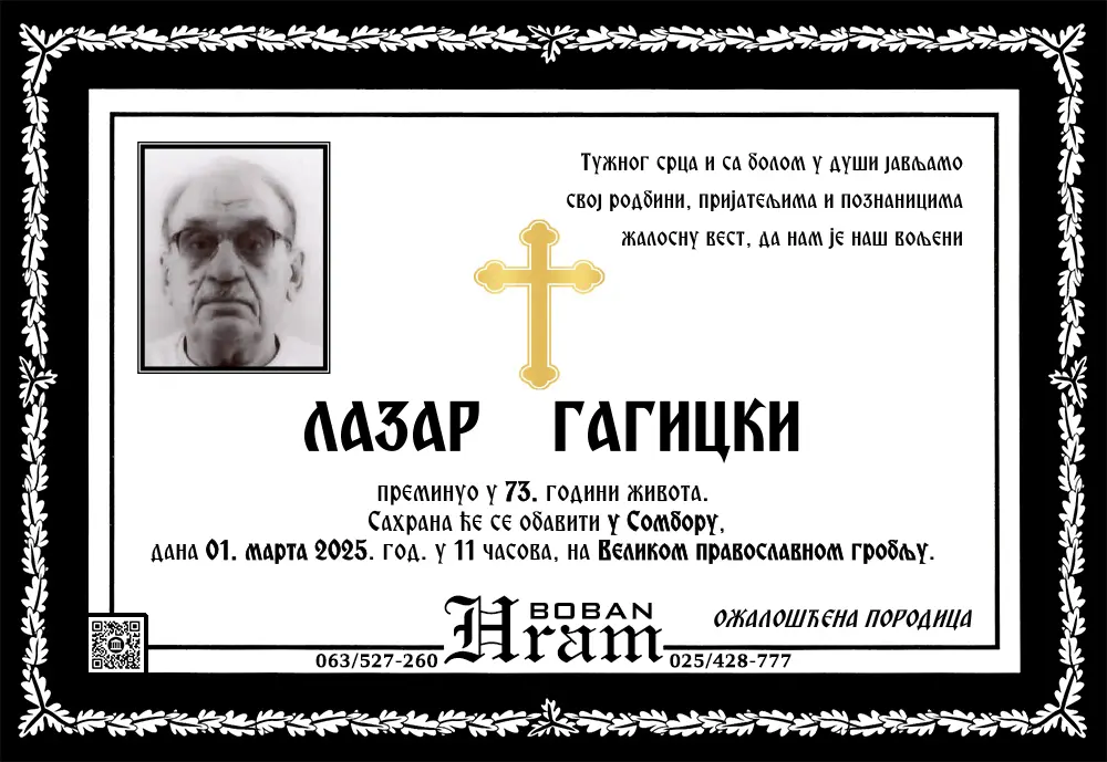 Umrlice i sahrane Umrlice Sombor – Najnovije smrtovnice i obaveštenja o sahranama. Hram Boban, vaša pouzdana pogrebna služba u Somboru.Podaci se ažuriraju svakodnevno. Hram ArhivaOvde možetete videti umrlice iz perioda starijeg od 3 meseca. Arhive » 2025 » 2025-Mart Arhive » 2025 » 2025-Mart 1 2 ... 4 ► Raspored sahrana u Somboru – umrlice i terminiU okviru ove sekcije objavljujemo raspored sahrana u Somboru, uključujući groblja, termine i druge relevantne informacije.Naš cilj je da olakšamo porodicama i prijateljima pristup neophodnim podacima. 1 2 ... 9 ►